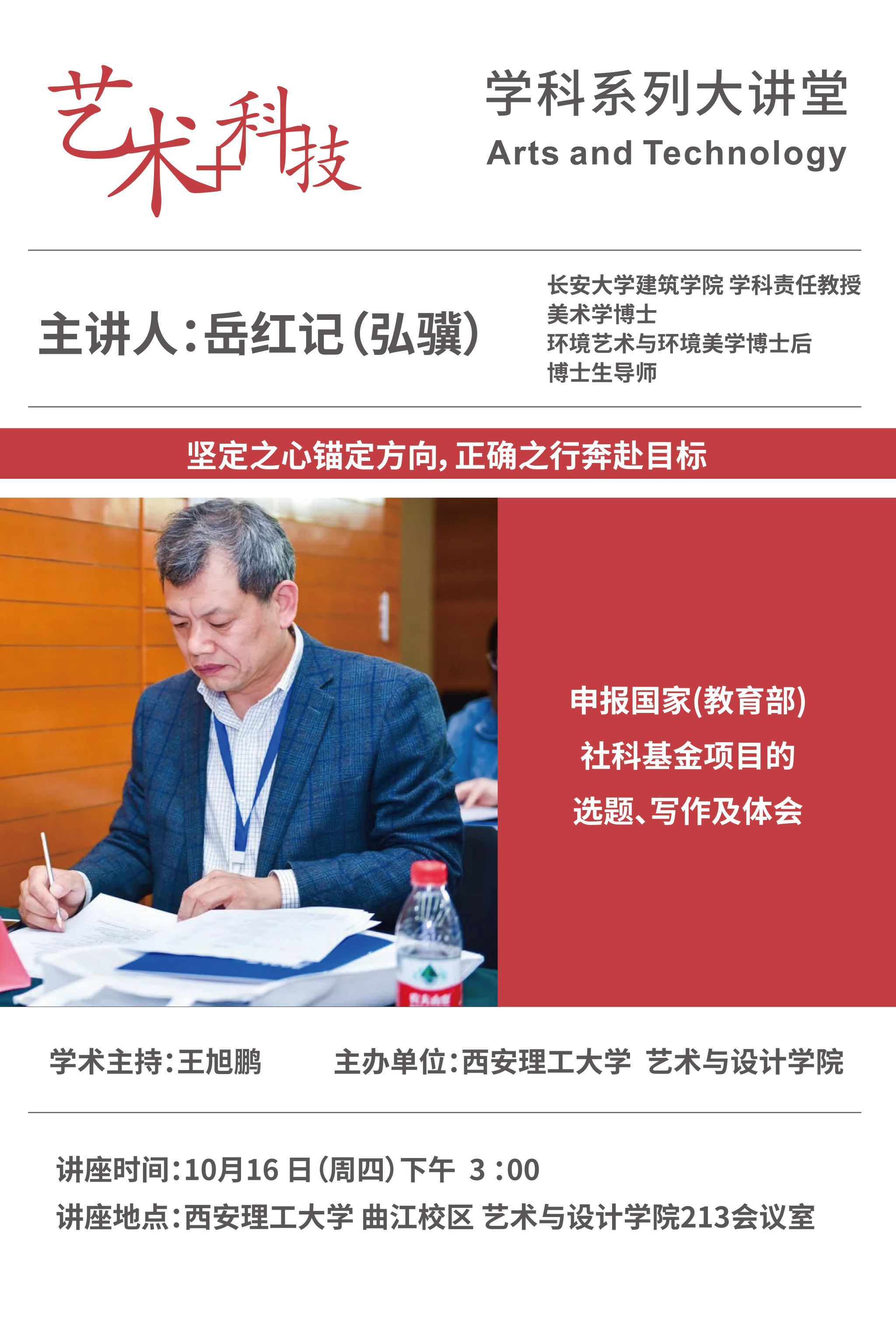 为切实提升2026年度国家(教育部)社科基金项目的申报质量,艺术与设计学院于10月16日下午,在艺设楼213会议室面向全体教师举办了“艺术+科技:坚定之心锚定方向,正确之行奔赴目标”为主题讲座。本期特邀长安大学建筑学院学科责任教授博士生导师岳红记教授,担任主讲嘉宾。学院全体申报相关项目的教师参会,会议由主持工作副院长王旭鹏主持。 岳红记教授以其深厚的学术积淀和丰富的项目评审、指导经验,为学院教师带来了...