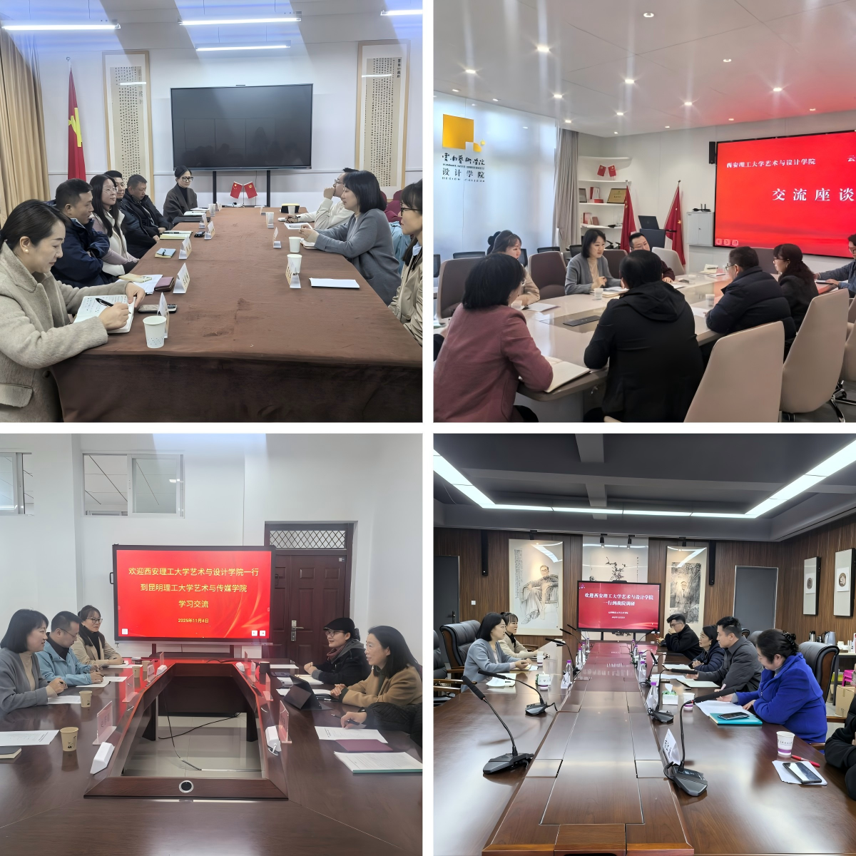 为精准谋划学院十五五规划,锚定高质量建设发展目标,11月3日至6日,艺术与设计学院党委书记李文英、副院长乔治、视觉传达系副主任李东博、组织员赵若羽一行四人赴云南大学艺术与设计学院、云南艺术学院设计学院、昆明理工大学艺术与传媒学院、云南师范大学艺术学院四所高校走访调研。