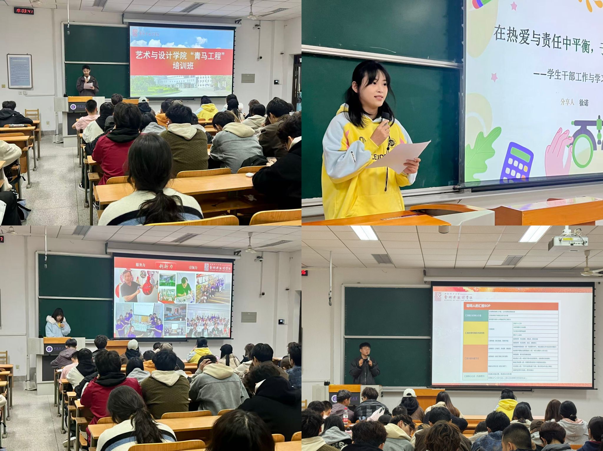 为锻造一支政治坚定、德才兼备的学生骨干队伍,10月20日,艺术与设计学院组织开展“从‘骨干历练’到‘职业续航’”专题培训。此次活动特邀西安理工大学学生会体育发展中心分管主席徐诺、学院19届学生会主席团成员东顺、孙诗雨三位代表,围绕学生工作与职业素养衔接展开经验分享。